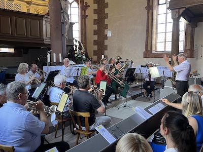 Außerdem war das umfangreiche Programm auch um Wortbeiträge ergänzt. Der Höchster Bürgermeister Jens Fröhlich erinnerte sich an eigene Erfahrungen als Jungbläser. Diese liegen zwar schon einige Zeit zurück, aber auch damals war Michael Bodensohn bereits Chorleiter und eben auch Lehrer. "Danke für Deine Ausdauer", wandte Fröhlich sich direkt an Bodensohn. Der Posaunenchor sei ein "klangvoller und lebendiger Teil unserer Identität, und er ist tief verwurzelt in unserer Gemeinde", erinnerte der Bürgermeister. Er bereichere nicht nur das kirchliche, sondern zugleich auch das kulturelle Leben. Dass die Kirche nun anlässlich des Jubiläums "fast so voll ist wie an Weihnachten", zeige die große Wertschätzung.