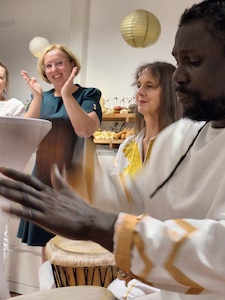 Da die Feier in die Interkulturelle Woche fiel, sorgte der Trommelworkshop 'Rhythmus Afrikas' unter der Leitung von Moulaye Seck für einen schwungvollen Rahmen. Sein Motto - "Gib jedem Tag die Chance, der schönste deines Lebens zu werden" - war nicht nur musikalisches Leitmotiv, sondern auch eine Ermutigung für alle, die sich die Regionale Diakonie nur schwer ohne Natalia Schitz vorstellen können: Es wird weitergehen, auch wenn viele Veränderungen zu bewältigen sind.